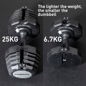 These Primal Personal Series 4.5 25kg Adjustable Dumbbell have a smooth weight selection with easy adjustment sliders & moulded storage tray displaying weight increments. Can be bought singularly as a pair and with a neat storage stand The adjustable weight setting makes it easy to find the perfect weight for any exercise, while the neat storage stand keeps your home gym tidy for your next workout.