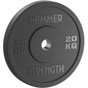 Hammer Strength Standard Rubber Bumper Plates boast a high-performance providing quality with an economic price—these bumpers are made with a stainless steel insert, pressed, and flared to resist wear and tear when loading and unloading on Olympic bars.