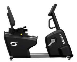 The Cybex V Series Recumbent Bike has a sleek walkthrough design with D-loop handles that makes getting on and off easy for any exerciser. It also has a high-back seat for comfort.