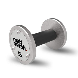 FeaturesPrimal Strength Custom Steel Dumbbells will transform any gym or performance centre. The Dumbbell is made from hardened, milled steel (the same steel we use for some of our barbells) and as such offer an exceptionally hard wearing dumbbell that won’t chip, bend or corrode. The dumbbells come with ionised black 35mm knurled handles and can have up to 4 custom plates per end. Our dumbbells are unique in the fact that we don’t use generic dumbbell plate sizes, this ensures the smaller dumbbells have a smaller dumbbell head allowing for a greater range of motion and ensure you don’t have oversized clunky steel dumbbells.