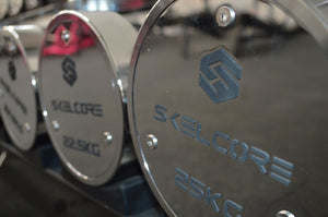 Opt for superior quality instead of cheaper alternatives and depend on the advanced features of the Skelcore Chrome Steel Dumbbell (2.5kg - 25kg) 10 Pair Set, such as comfortable handles, chrome plating, a knurled grip, and a raised rubber logo.