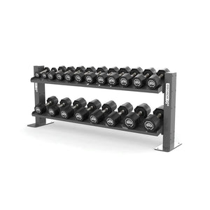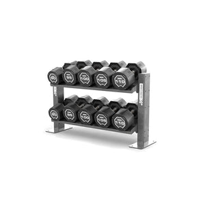 RACK DIMENSIONS.The modular Escape Fitness Octagon Dumbbell Racks. two foundational storage solutions, the 5-pair and 10-pair dumbbell racks, are efficient standalone solutions that can also be utilized to build the ideal modular setup for your facility. Combining the two components yields a striking choice compared to traditional shelving, allowing you to provide easy access to gear without obstructing the view of your gym or wall graphics. With a slim profile and freestanding design, you get more space to bring members in for workouts and the freedom to reposition the rack for unique layouts over time.