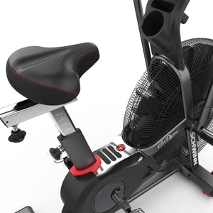 The Schwinn Airdyne AD8 Airbike features an air resistance system that offers unlimited resistance levels, adjusting in real time to match the intensity of the user's workout. This innovative mechanism allows for a seamless and intuitive adjustment to cater to all fitness levels, without the need for manual changes.