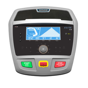 • The Horizon Elite T7.1 Treadmill offers cutting-edge improvements for an exceptional user experience. A convenient control dial with clear indicators enables users to quickly customize and initiate workouts. An intelligent tread sensor automatically wakes the console when the user steps on, then automatically stops the belt when the user steps off. LED-lit sensitive touch keys provide added in-use control, and a thicker belt stands up to heavy use. INCLUDES INSTALL.