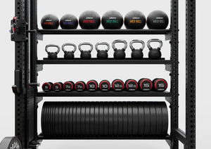 Optimise your gym area with the Jordan J75 Storage Shelves, designed to enhance organization and efficiency. These sturdy, adaptable shelves attach easily to the Jordan J75 Compact Power Rack and J75 Cable Rack, providing ideal storage for kettlebells, dumbbells, weight plates, wall balls, and other smaller equipment. Streamline your workout environment and keep your gear neatly arranged. Various configurations and options are available to suit your needs,build up from the drop down shown.