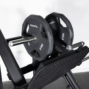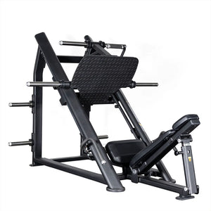 The Primal Pro Series 45 Degree Leg Press is a highly effective leg exercise that targets the glutes, hamstrings, and quads. Its ergonomic design provides a safe and natural pressing motion while the oversized, angled foot plate allows for maximum weight to be pressed without straining the lower back. With the ability to adjust foot positions, users can target various muscle groups from different angles. This modern machine also offers a user-friendly design, allowing for comfortable single or dual leg presses, and includes non-slip black foot plates for added safety, even with heavy weights.