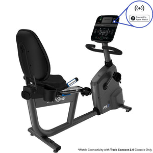 The Life Fitness RS3 Recumbent Step-Through Lifecycle Bike with upgraded Track Connect 2.0 Console offers optimal comfort and user-friendly features, such as its quiet operation and industry-renowned dependability associated with the top health club brand worldwide. Its open, step-through construction guarantees easy access while the breathable mesh fabric back on its reclining seat provides a comfortable cycling experience.