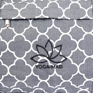 Also suitable for those wishing to carry a mat, towel, and a change of clothes to the gym. The long handles allow the bag to be carried by hand, over the shoulder, or like a rucksack. This bag can also carry the Pilates-Mad 15mm Pilates Mat or the Extra Wide Studio Yoga Mat 80cm as the extra-long zip opening allows for easy access for bulkier items, but they will protrude from one end. Featuring two pockets, one on the side and one at the end for storing your essentials whilst you practice. 100% cotton outer with showerproof polyester lining.