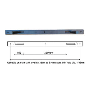 Keep your studio tidy with the Fitness-Mad Exercise Mat Rack for Core Fitness Club Aerobic Eyelet Mat. Designed to hold mats with eyelets with a hole diameter greater than 2cm. The bars can be adjusted from 36cm to 51cm apart (centre to centre) and are suitable for mats with eyelets of 1.95cm or larger. The bars that secure the mats are 21cm long and on a suitable wall can hold up to 12 x 10mm mats or 10 x 15mm mats.