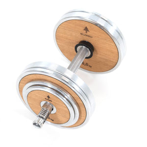 NOHRD Weight Plates Tower are designed with form fused seamlessly with functionality. Real wood veneer coats the center of each plate, making them not only aesthetically pleasing, but also offering a practical benefit. The wood veneer acts as a sound buffer to prevent metal clanking during use, providing a more pleasant experience while exercising.