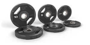 The Escape Nucleus Urethane Olympic Grip Plates have a well crafted textured grip, these discs also feature material variances to the face, allowing quality laser engraving and text PU filling for client branding options. The weight indicators are also debossed onto the periphery face of each disc for easy identification when racked horizontally.