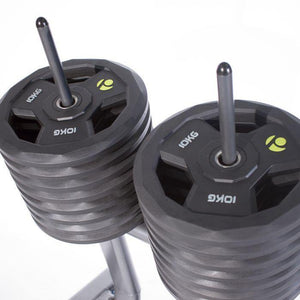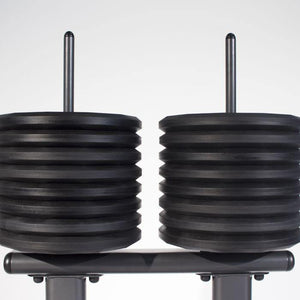 This space saving rack has been designed to hold 10 pairs of 10kg 30mm discs. Designed for easy loading and unloading of weight plates.