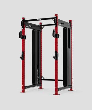The Exigo X70 Cable Power Rack integrates a sophisticated high/low adjustable pulley mechanism that connects with twin autonomous weight stacks, adaptable to your precise resistance specifications. Technical superiority is demonstrated in the premium J-hooks, engineered with specialized high-impact plastic core technology to preserve your Olympic barbell's surface finish and structural integrity. The unit's refined aesthetic is enhanced by functional design elements including integrated band attachment points and purpose-designed front stabilisers that provide exceptional structural stability without requiring permanent floor mounting. A range of colours as standard, as shown.