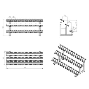 Discover the sleek Matte Black Primal Pro Series 3 Tier Dumbbell Rack. Elevate your gym organization with this stylish and functional rack, capable of holding 15 pairs of dumbbells and with a weight capacity of up to 50kg.