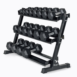 REP Hex Dumbbells also on display instore, they are available as individual pairs ranging from 2.5 kg to 22.5 kg, or as a complete 2.5–22.5 kg set, offering an affordable and efficient solution to fully equip your home gym. With 2.5 kg weight increments, you can progress gradually and avoid plateaus between jumps in resistance. For users who prefer imperial measurements, REP Hex Dumbbells are also available in pounds.