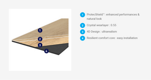 Gerflor CREATION 55 is a 0.55mm transparent wear layer synthetic floorcovering, designed with a decorative, flexible, antistatic, abrasion Group T surface. It is available in tile or plank formats and features bevelled edges for added elegance. The advanced Duo Core Technology consists of a rigid core back layer reinforced with a fiber veil, coupled with a flexible core top layer, providing a softer and more comfortable feel. The overall thickness is 2.5mm, and it is treated with a cross-linked polyurethane surface (PUR+MATT), simplifying maintenance and removing the necessity for initial polishing.