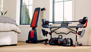 The highly innovative BowFlex® SelectTech® 2080 Barbell with Curl Bar offers complete full-body strength training, adjusting from 9-36 kg. in 4.5 kg. intervals with the simple turn of a dial. Users can swiftly transition between various barbell and curl bar exercises.