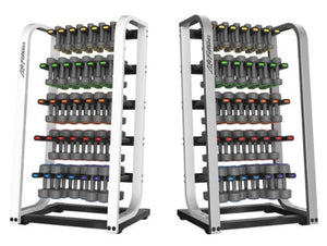 The Studio Collection Dumbbell Pack was designed by leveraging proven storage and organisational features from other industries. The system uses colour-coded dumbbells and weight horns to allow exercisers to quickly and easily identify their weights, use them, then place them back in the correct location—leaving your studio clean and organised.