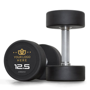 • A further extension to there comprehensive strength range, now Jordan custom branded Urethane Dumbbells where you can now add your logo, slogan or for a lighter touch, your brand colour, to our premium quality Urethane Dumbbells.