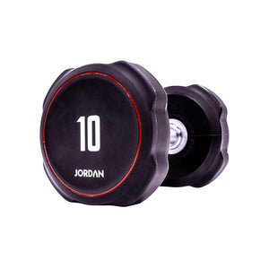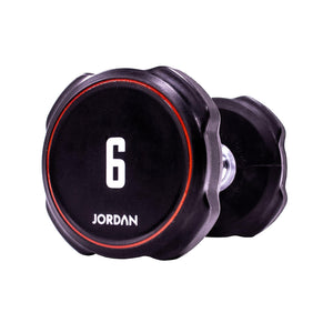 FeaturesNew for 2019 and completely unique to Jordan, our improved anti-roll design makes these Ignite Urethane Dumbbells ideal for free weight areas, whether on a yacht or on land.