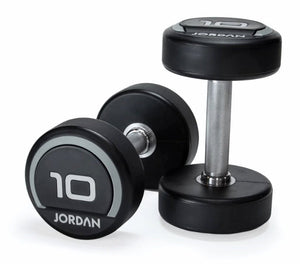 Introducing the newly designed Jordan Premium Urethane Dumbbell Sets in a sleek grey color., from 1-10kg, 2-20kg upwards, these premium, commercial-grade dumbbells boast one of the highest strength ratings on the market, thanks to their polyurethane construction.