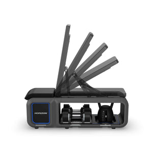 Enhance your home strength training with our advanced Horizon Bench and Adjustable Dumbbells & Kettlebells. Customize your workout routine through our innovative atZone app, designed to help you reach your goals with precision and efficiency. Our new bench offers an ultra-comfortable backrest that can be adjusted to five angles, providing a dynamic workout experience. It also comes with easily adjustable dumbbells and kettlebells for beginners, and integrated storage for convenient organization. Enhance your home strength training with our versatile bench today.