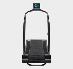 The non-motorized Curve is made possible by WOODWAY is patented running surface. The Slat Belt system is near frictionless, which allows the belt to glide smoothly. Combine that with an innovative curved running surface and suddenly users are able to control their pace at will. To speed up, simply start running, to slow down, allow yourself to drift down the curve. It is all about body position and gravity