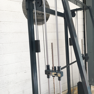 The amazing Watson dual Stack Smith machine is really smooth to use, taking out the need to load plates it is available with 2 x 100kg stacks also providing a bar that sits 550mm from the ground at its lowest point.