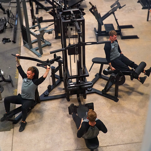 7 stations in 1 compact machine, this is the exceptional Watson Total Fit Gym. It is built around a super compact framework housing 3 operate weight stacks which feed: A combination of our Leg Extension / Leg Curl , Lat Pulldown / Low Pulley Row and Multi-Press.
