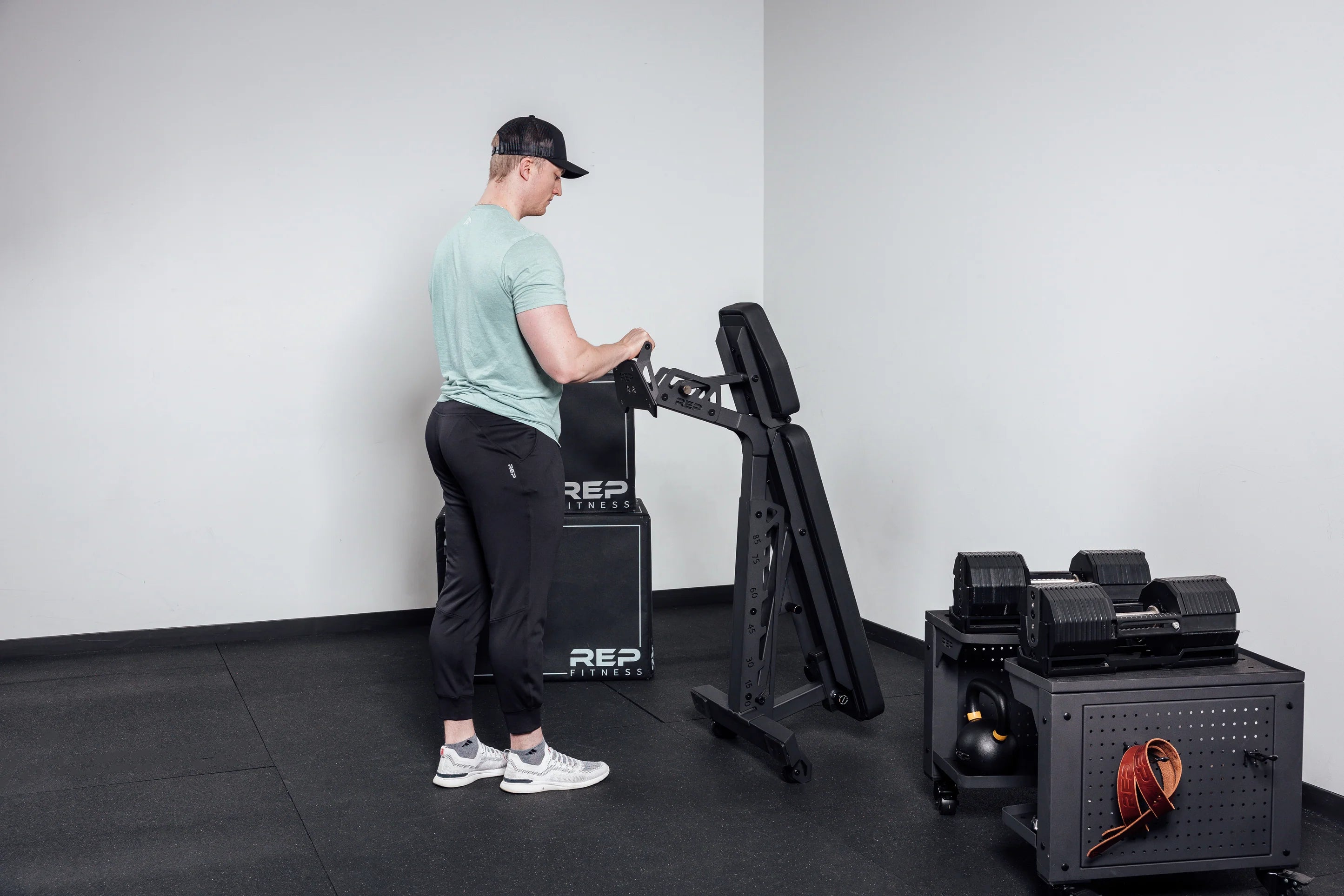 The closed ladder-style adjustment system uses thick, precision-crafted ladders for smooth, secure position changes. A molded polyurethane pad wrapped in REP’s signature CleanGrip™ vinyl provides outstanding traction, support, and durability. Future-compatible with REP’s upcoming attachments — including leg curl/leg extension and upgraded leg roller options — the Nighthawk™ offers expanding versatility. Despite its rugged frame, optimized weight distribution makes its 88 lbs feel remarkably light, ensuring easy portability. Finished with a knurled front handle and reinforced transport wheels, this adjustable bench is engineered to meet the demands of both home lifters and boutique studio professionals.