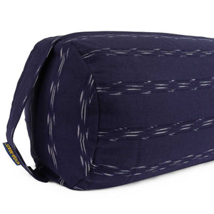 This Yoga Mad Patterned Buckwheat Yoga Bolster comes in a stunning blue pattern design in a Jute/Cotton blend material with a useful carry handle.