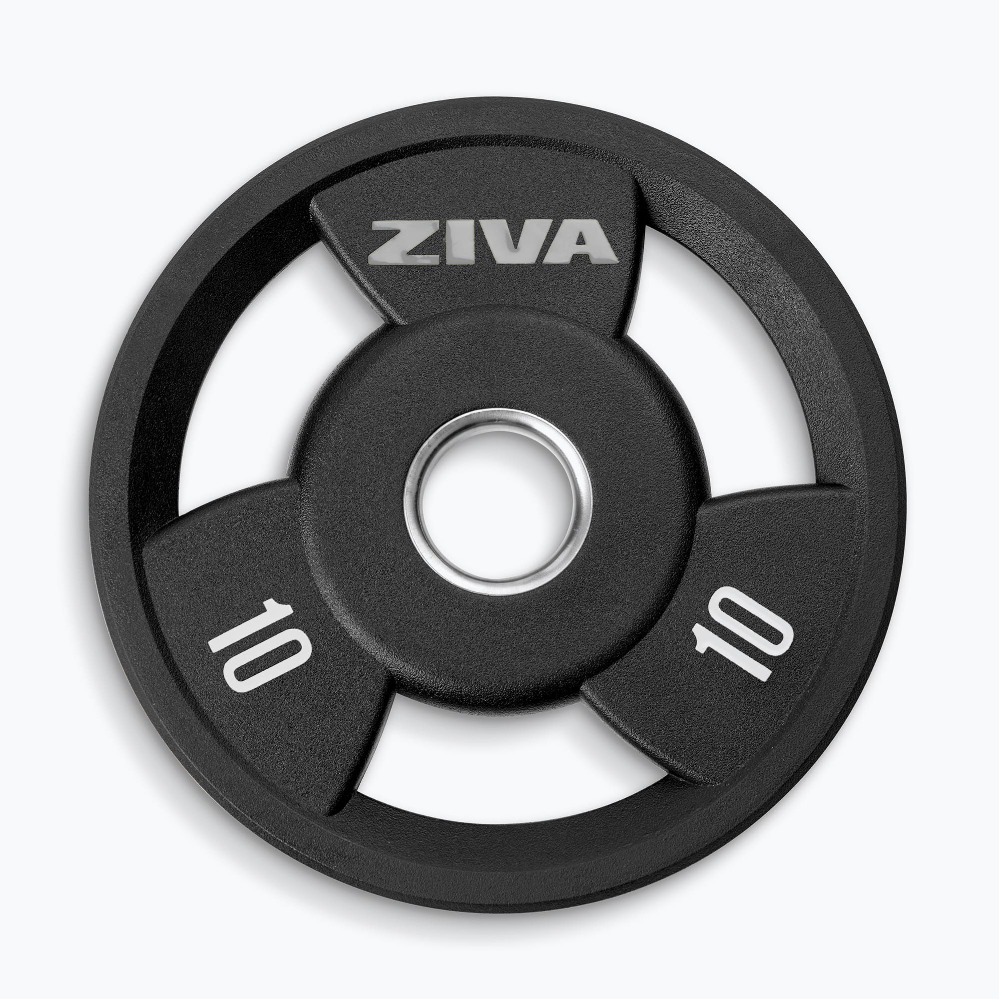 Ziva SL RPU Grip Disc wraps our precision cast iron weight disc in ultra-high durability RPU that combines the renowned ruggedness of urethane with the slight bounce of rubber, making it perfect for protecting the weights as well as the surrounding gym. Made to fit any standard Olympic bar, the SL RPU Grip Disc is scratch-, wear-, and rust-resistant and features beveled edges, large weight ID numbers, and handles that make loading and unloading easy.