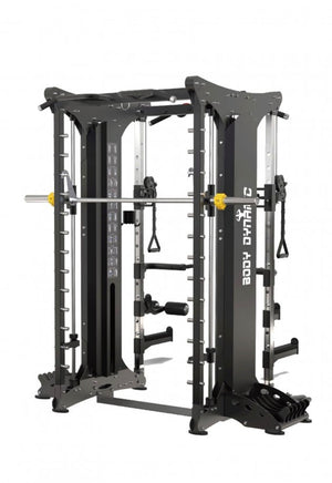 The Body Dynamic S122 Dual Multi-Functional Smith Machine is the perfect piece of equipment for any home gym. On a compact footprint, it combines the safety of a Smith Machine with the versatility of a cable machine for a variety of free weight exercises. With its adjustable safety stops, the S122 ensures safe and efficient strength-training with stabilization.