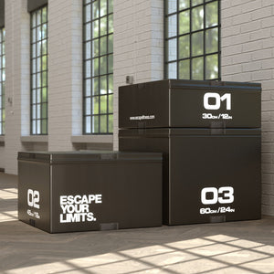 These Escape Plyosoft Boxes (Black) can be used individually or stacked for variable height options depending on ability and progress. Velcro tabs hold them in place for safety and confidence when stacking, and they're light weight, so they're easy to move while in use or for storage.