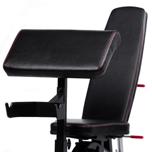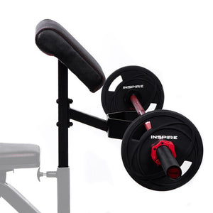 This Preacher Curl Attachment from Inspire Fitness is equipped to attach to the Inspire Fitness FID Bench and SCS Adjustable Bench, and suitable for either single or double-handed curl exercises. It easily slides into the front frame post for additional workout options and features a bar rest and height adjustment.