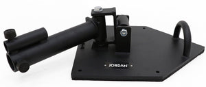 This Jordan Core Plate is a multi-purpose, extra-heavy base Landmine Attachment with an Olympic Bar holder and a rope anchor. It allows users to perform numerous strength-building exercises, such as landmine squats, offering extensive functional training possibilities.