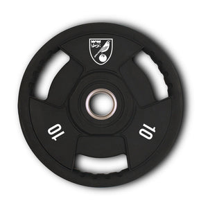Ergonomic grips and a contemporary stylish design, make this premium urethane Olympic disc a worthy addition to any free weights area.