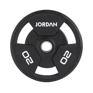 Maximise your plate loading efficiency and precision with our upgraded JORDAN Urethane Tri-Grip Olympic Plates. The improved grip texture on each handle ensures a smooth and secure grip, allowing you to easily load up and rep out during your machine or barbell workout.