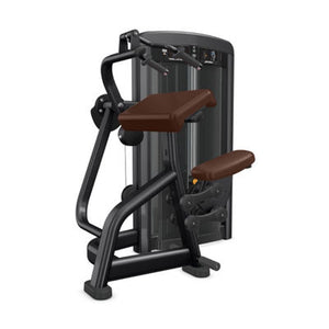 The Insignia Triceps Extension unit’s angled seat and arm pads enhance stability during exercise, and the handle pivots automatically accommodate different forearm lengths.