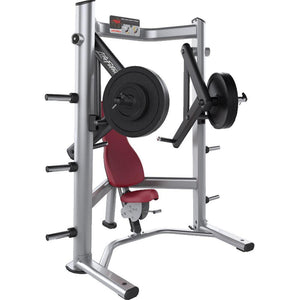 The Signature Series Decline Chest Press has an upright body position that is comfortable and non-intimidating.
