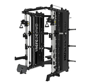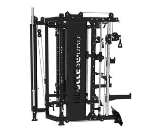 Take your workouts to the next level with our state-of-the-art, all-in-one home gym solution! Our newest addition to the highly sought-after MuscleSquad Advanced Multi-Functional Trainer line features a 3rd weight stack, providing a dedicated station for Lat pull downs and low rows, perfect for intense pulling exercises.