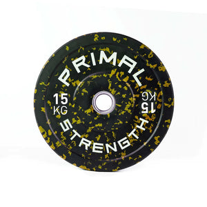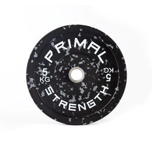 The Primal Performance Series Bumper Plates are available in traditional Olympic colors and come in varying weights: Grey (5kg), Green (10kg), Yellow (15kg), Blue (20kg), and Red (25kg). They are compatible with any Olympic bar and are designed for heavy-duty use, making them perfect for functional boxes. However, for repeated, overhead drops, we suggest using the Hi-Temp Grain Bumpers which have a higher bounce and can better protect the bars and flooring.