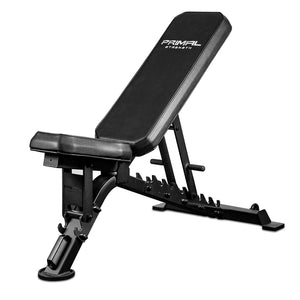 Constructed from laser cut and robotically welded 3mm steel, with a multi-angle 8mm chrome back support, the Primal Performance Series V2 FID Bench is the top choice for weightlifting. Whether using dumbbells or working within Primal's Commercial Racks, this bench offers ultimate durability with a tested weight capacity of over 500kg.
