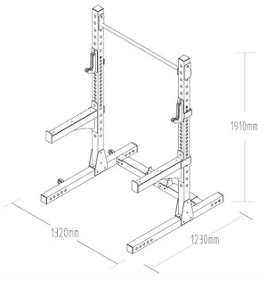 The overbuilt rack has 75x75mm box section uprights that are 3mm steel, we have used westside style spacing to allow accurate benching heights. The oversized safeties allow for rack pulls and are supported by 6mm brackets and UHMW coverings. The Premium sandwich J-hooks, again are protected with UHMW which protects your bar knurling and the J-Hook design prevents bounce out.