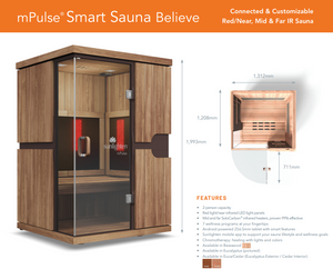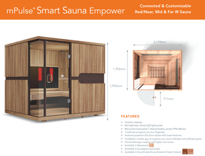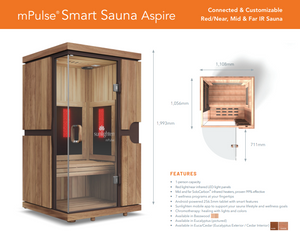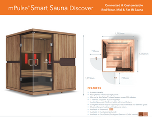 • The Sunlighten mPulse Infrared Sauna is the ultimate wellness sanctuary, offering stunning design, quality craftsmanship, and superior safety. With customisable wellness options at your fingertips, taking care of yourself has never been more empowering, enjoyable, and effective. Improve your well-being with the all-inclusive mPulse smart sauna.