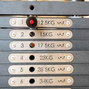 Solidly constructed from 7cm x 7cm x 4cm box section steel with heavy, dual weight stacks to challenge the most experienced athletes.